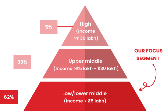 In India, ~60% of the population still earns less than 5 lakh per year, which equates to less than 1500 rupees per day. This segment has been the victim of unequal access - unequal access to capital, unequal access to healthcare, unequal access to a better life.